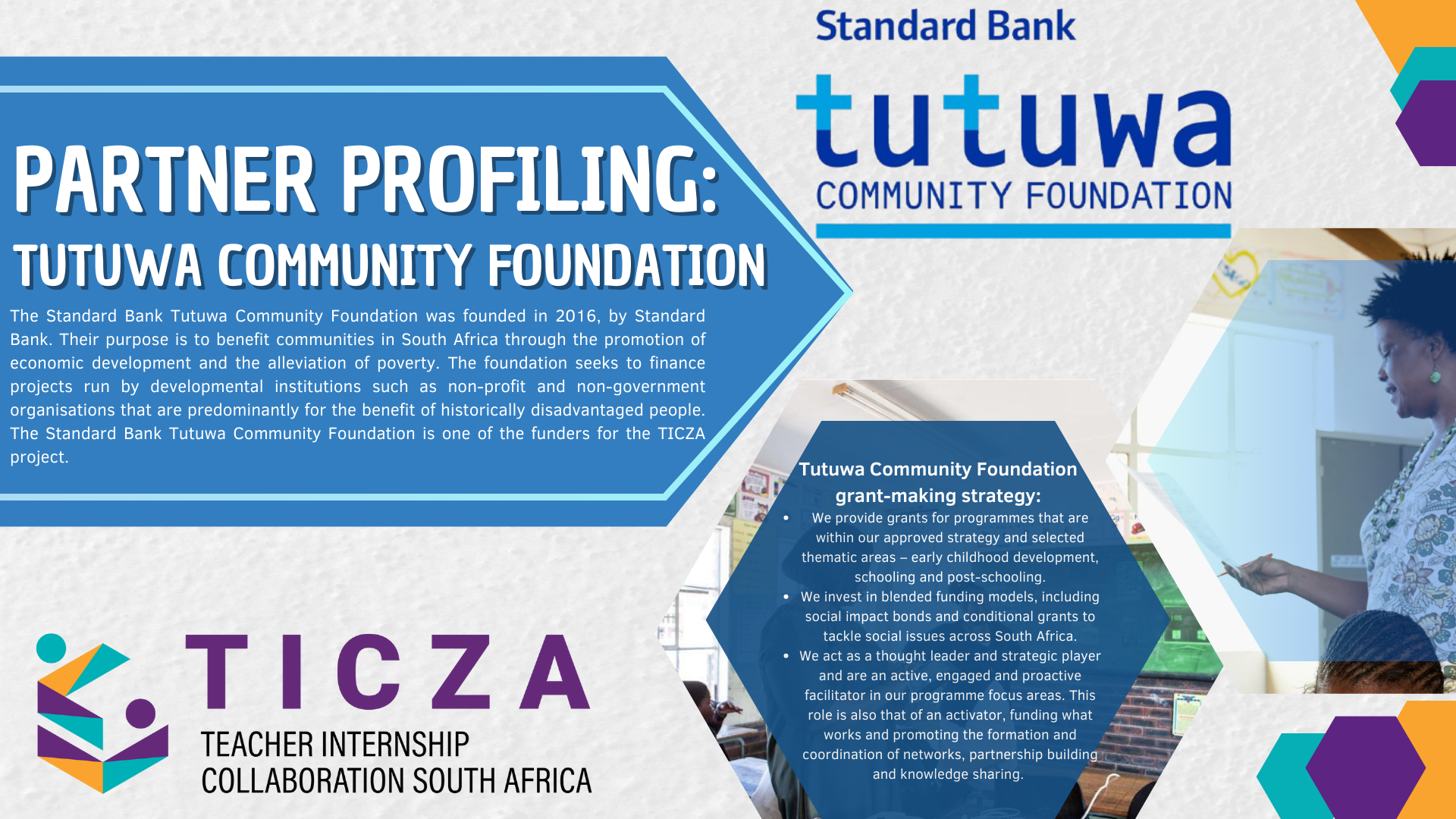 The spotlight is on the Tutuwa Community Foundation, which was founded in 2016 by Standard Bank. The foundation's purpose is to benefit communities in South Africa through the promotion of economic development and the alleviation of poverty. The foundation seeks to finance projects run by developmental institutions such as non-profit and non-government organisations that are predominantly for the benefit of historically disadvantaged people. The Standard Bank Tutuwa Community Foundation is one of the funders for the TICZA project.