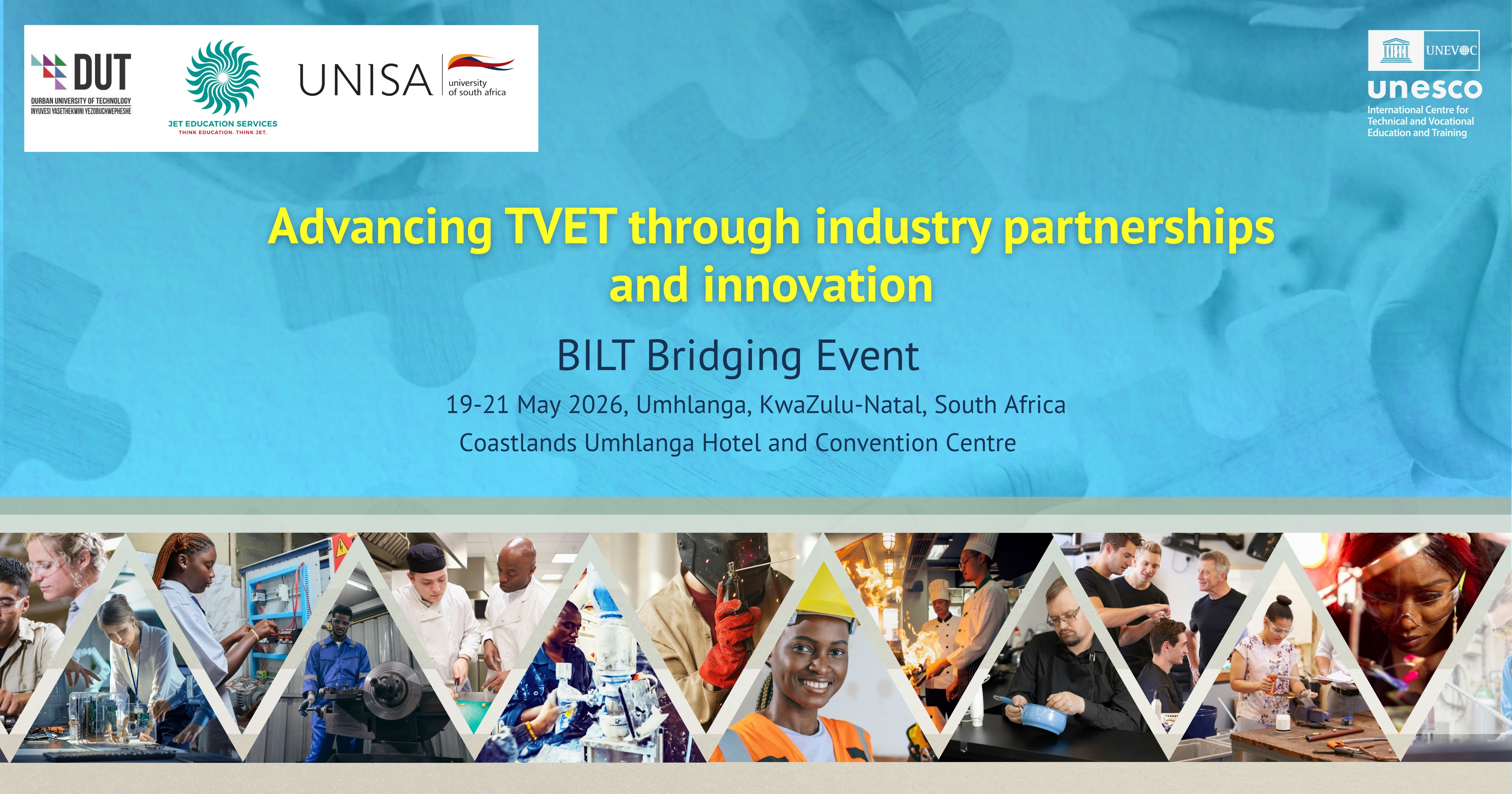 The UNESCO-UNEVOC BILT Bridging Event on advancing TVET through industry partnerships and innovation brings these priorities into focus. Taking place from 19 to 21 May in Umhlanga, KwaZulu-Natal, South Africa, the conference gathers global and regional stakeholders to explore how sustainable industry partnerships can drive high-quality, work-based and innovation-led TVET programmes.