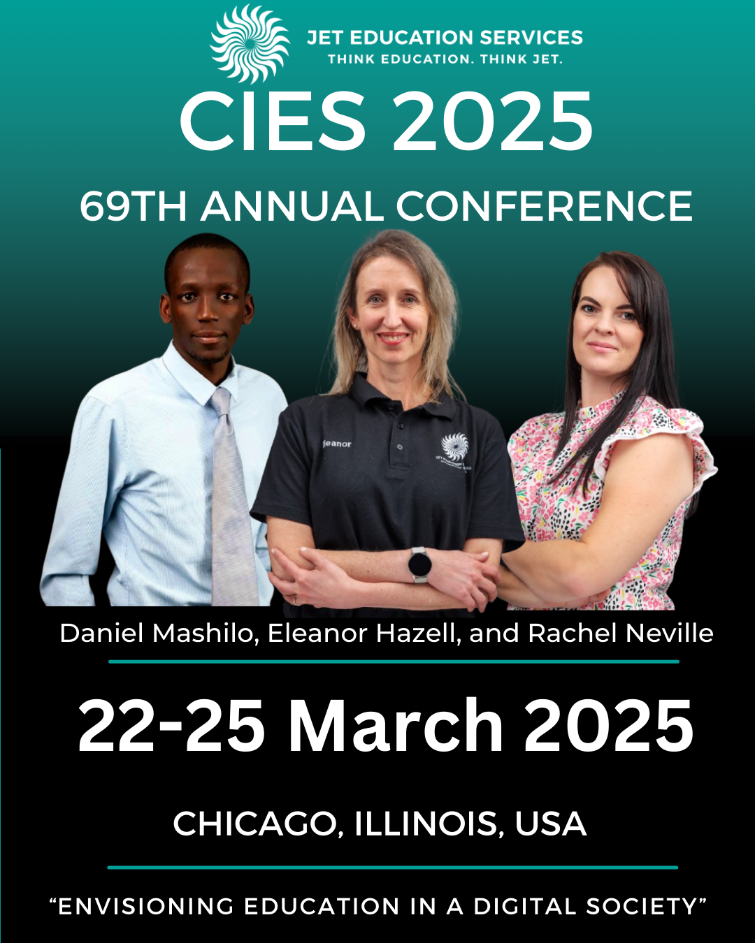 The Comparative and International Education Society (CIES) 2025 Annual Conference takes place March 22-26, 2025 in Chicago, Illinois, USA. The JET Team Daniel Mashilo, Eleanor Hazell and Rachel Neville will be representing JET at the CIES 2025 Conference.