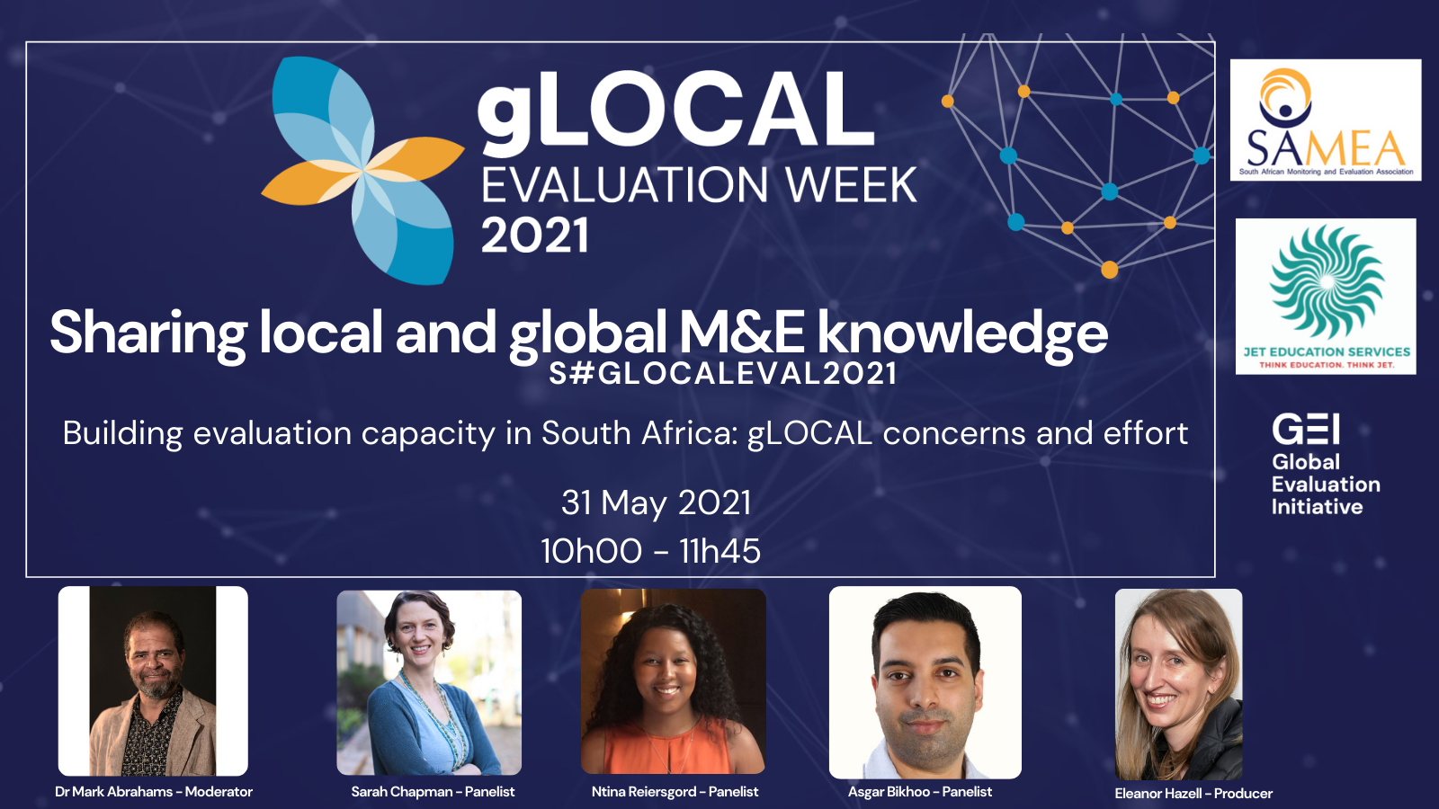 Moderator: Dr Mark Abrahams: Independent Consultant and Senior Associate with Southern Hemisphere Producer: Eleanor Hazell: Executive Manager: Monitoring and Evaluation - JET Education Services and SAMEA Board member