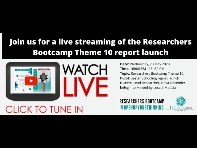 Join us for a live streaming of the Researchers Bootcamp Theme 10 research output: Post-Disaster Schooling - A study of how countries managed their education system during a disaster and the steps they took to re-establish normality