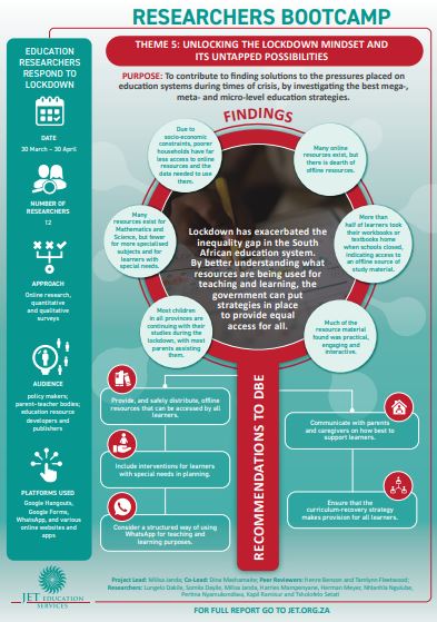 Lead and co-researchers: Milisa Janda, Dina Mashamaite, Lesley Abrahams, JET Education Services, Henre Benson (CASME)